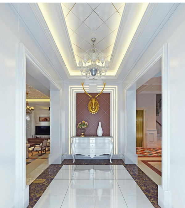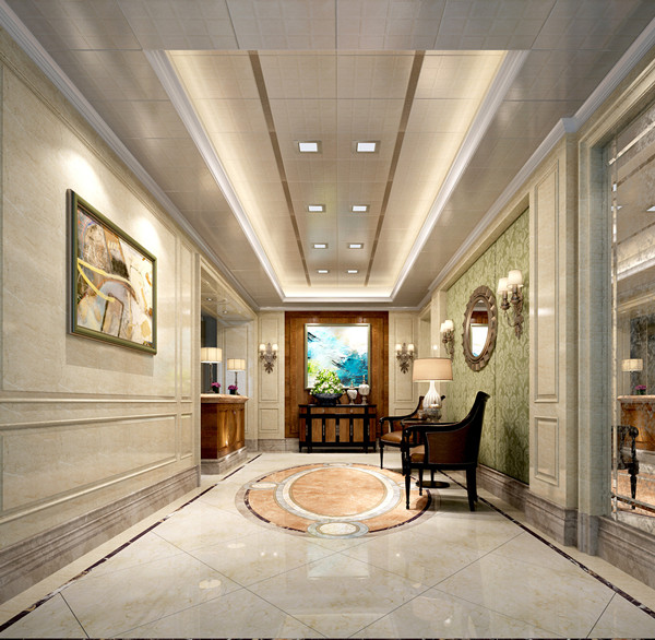 明亮的光線可以讓空間變得寬敞,也可以緩解狹長過道所產(chǎn)生的緊張感。過道常用多個(gè)筒燈、射燈、壁燈營造光環(huán)境。通過光線效果,增強(qiáng)過道的空間感,并且與客廳及其他空間區(qū)域相協(xié)調(diào)。